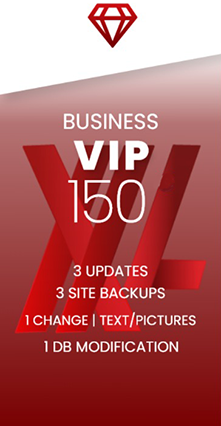 The VIP Plan includes 3 monthly updates, 3 backups, content revision, and database modification — all wrapped in top-tier service.